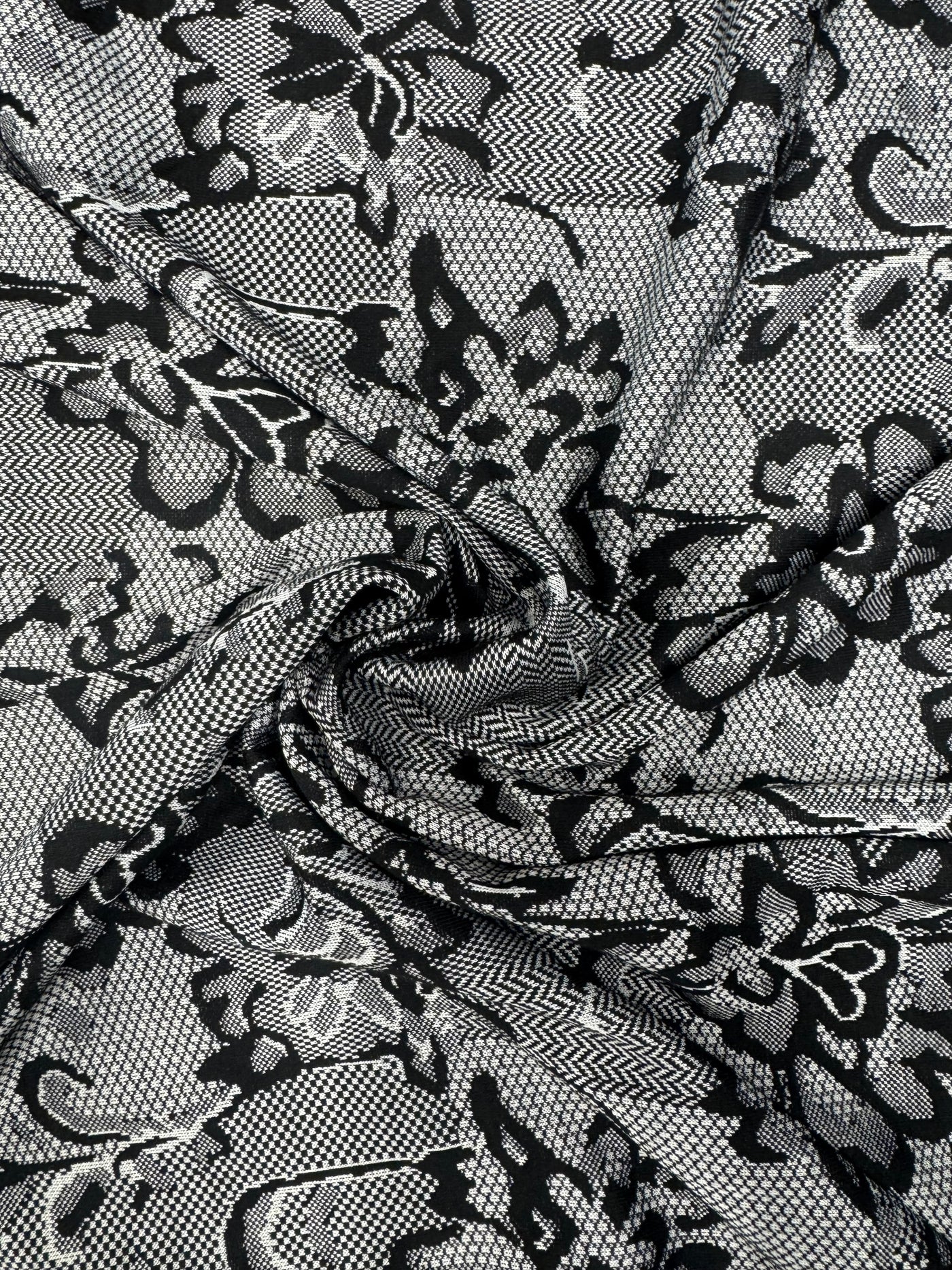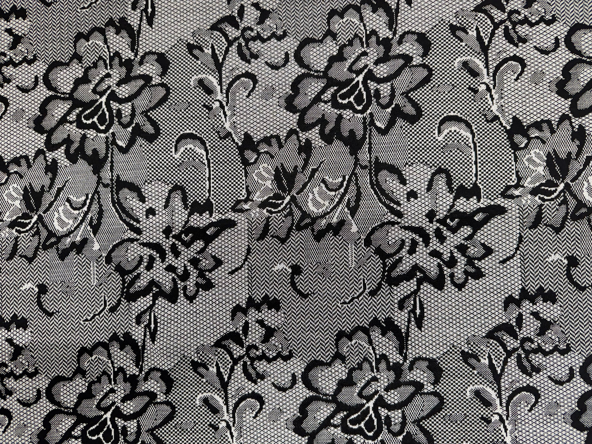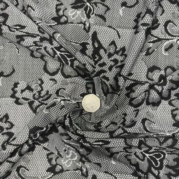 Black & White Textured Lace Print Jersey Dressmaking Fabric – 153 cm Wide