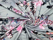 Grey Floral Pink Watercolor Liverpool Stretch Knit Fabric 142cm