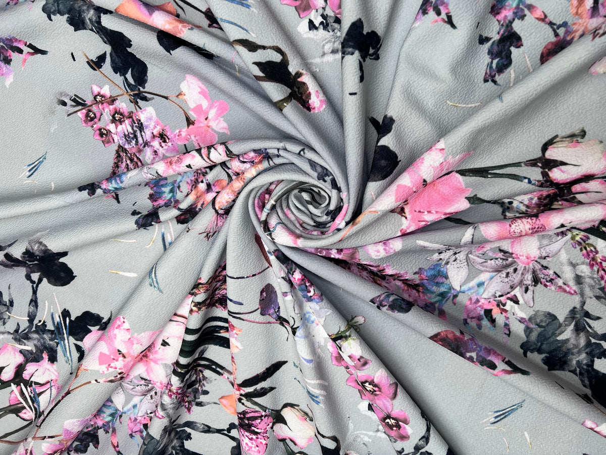 Grey Floral Pink Watercolor Liverpool Stretch Knit Fabric 142cm - Sample