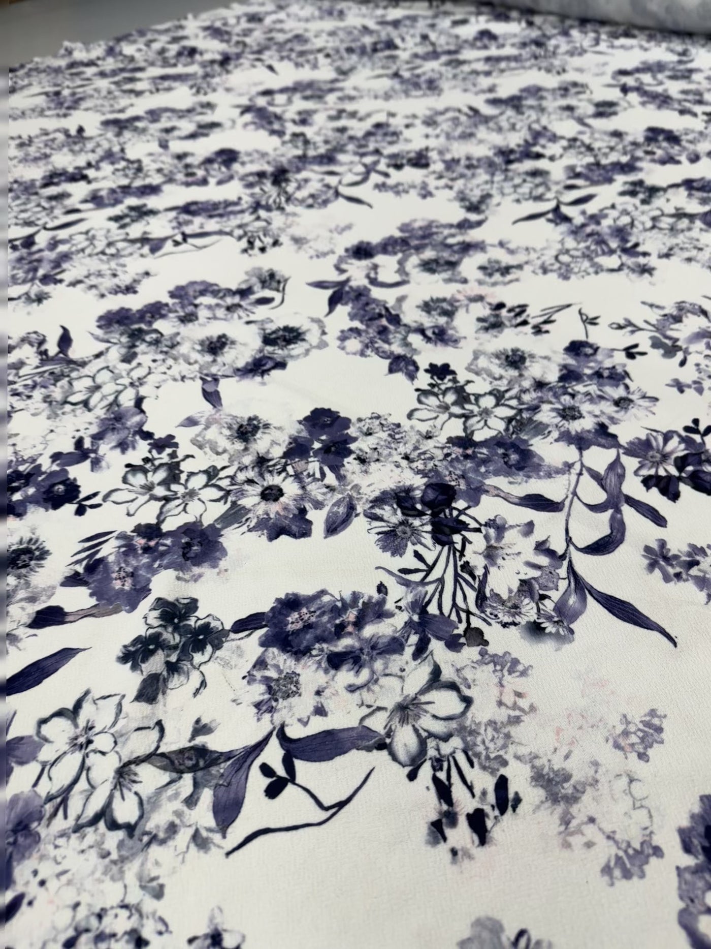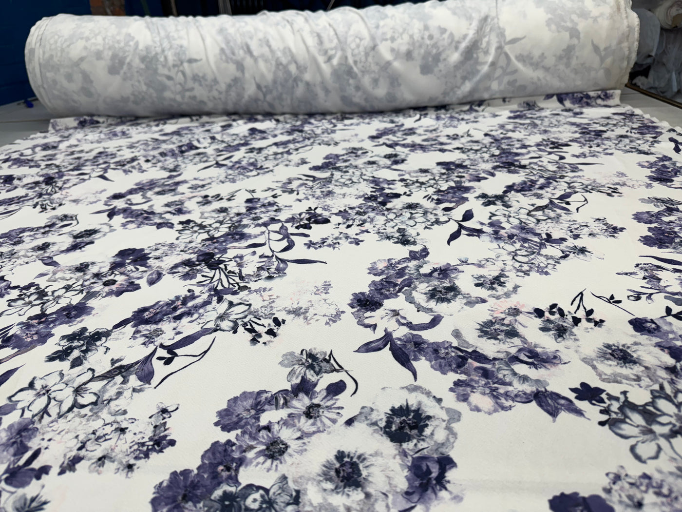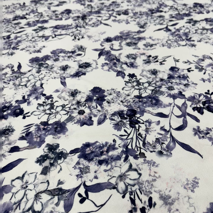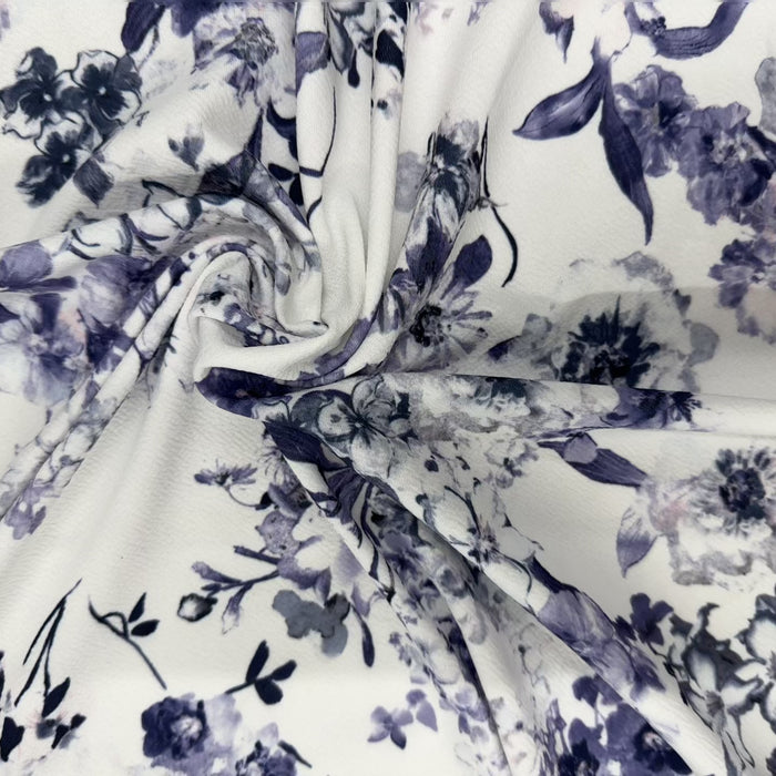 Dressmaking & Statement Fabric – Lavender Navy Floral Liverpool Fabric – Stretch Textured Knit – 154cm - Sample