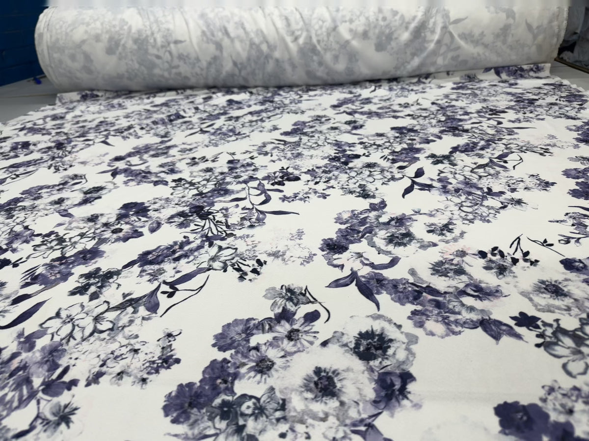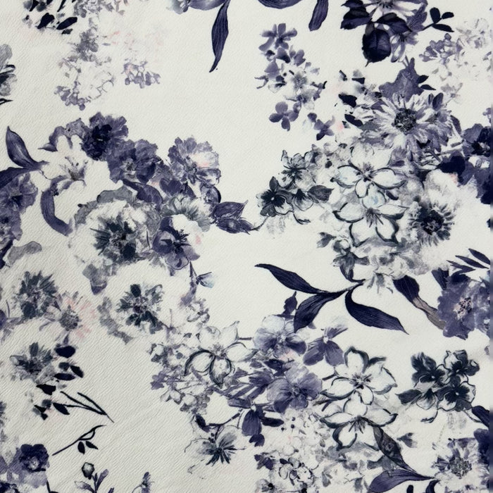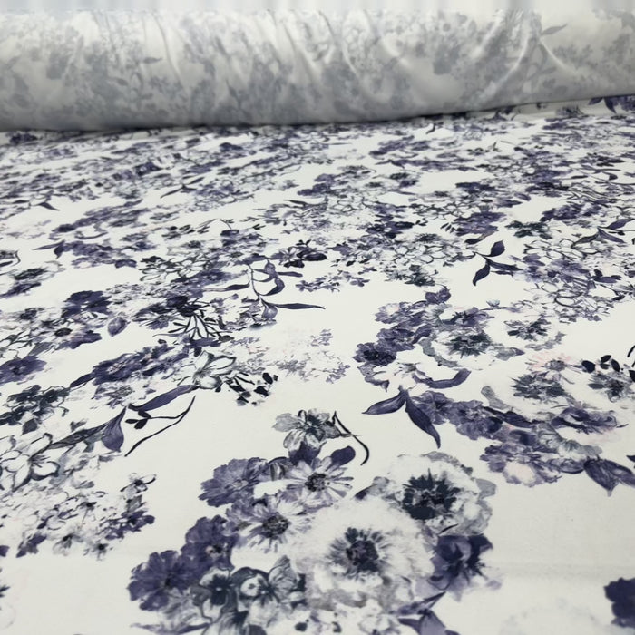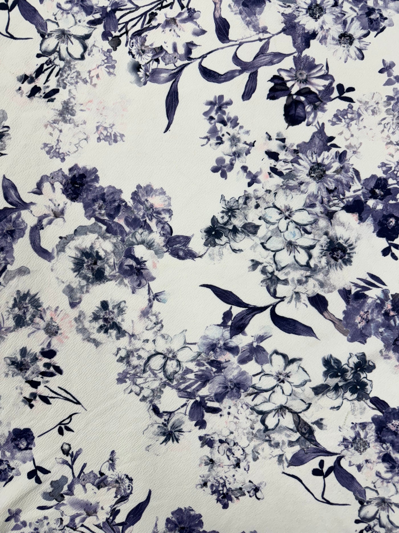Dressmaking & Statement Fabric – Lavender Navy Floral Liverpool Fabric – Stretch Textured Knit – 154cm - Sample
