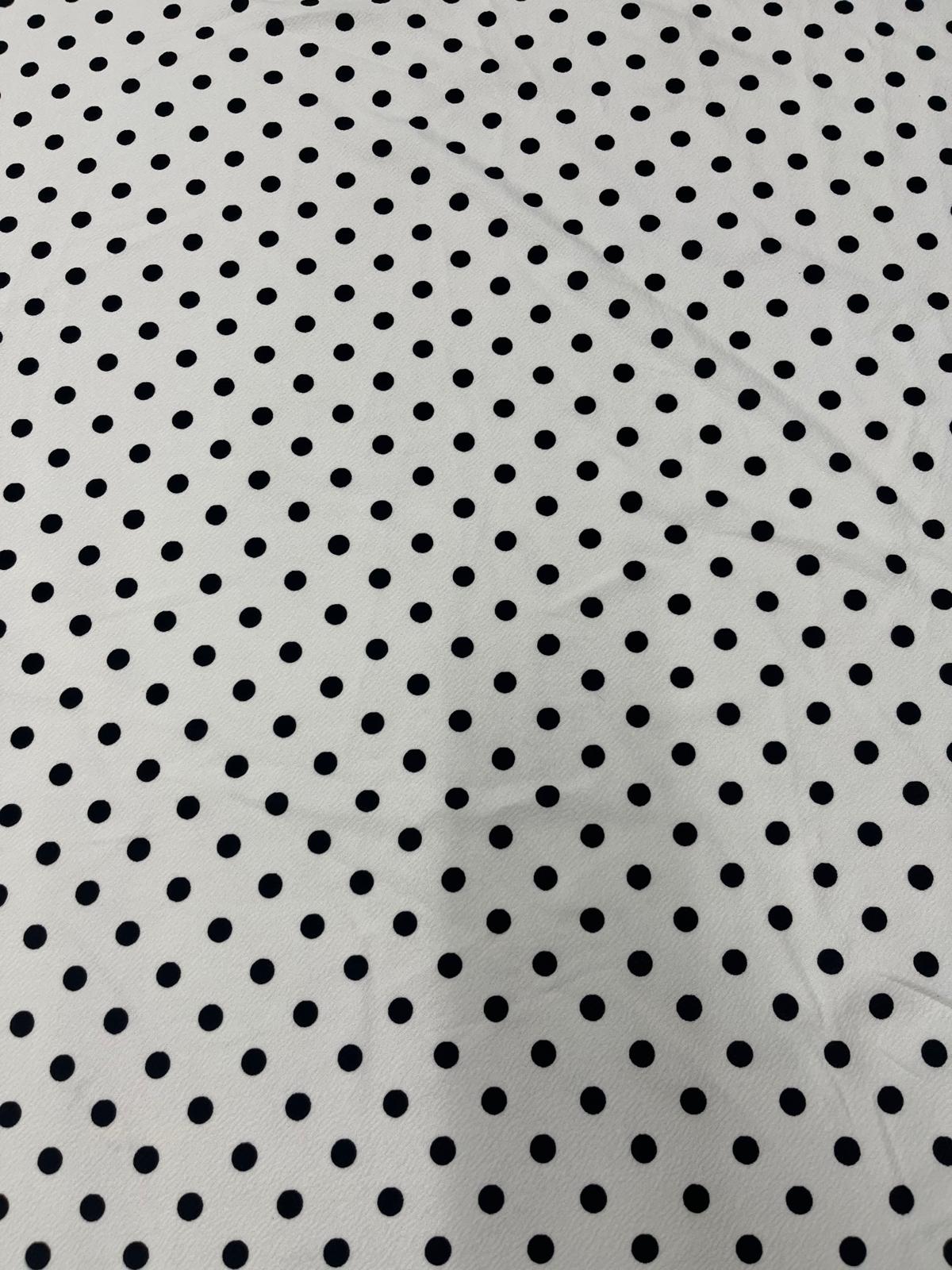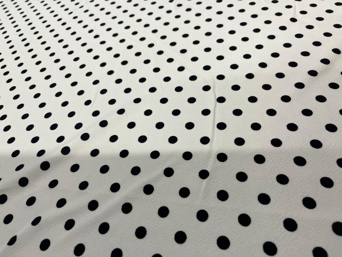 Structured Stretch Fabric for Dresses & Skirts – White Black Polka Dot Liverpool, 150cm Wide - Sample