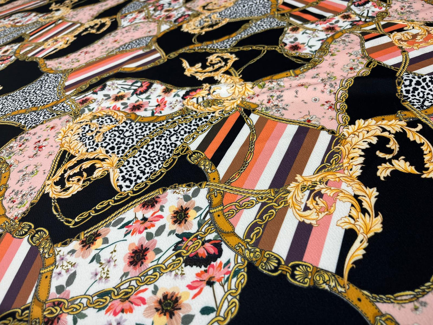 Structured Stretch Fabric for Dresses & Skirts – Floral Baroque Chain Liverpool, 150cm Wide - Sample