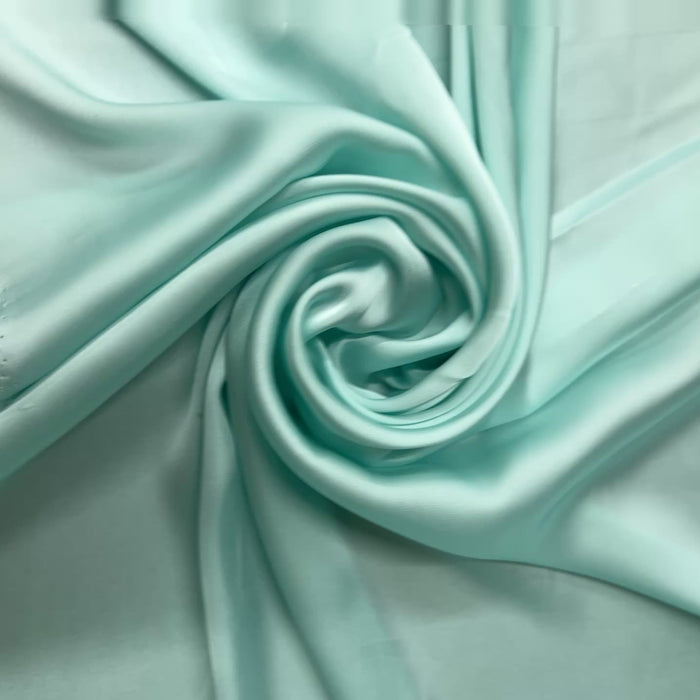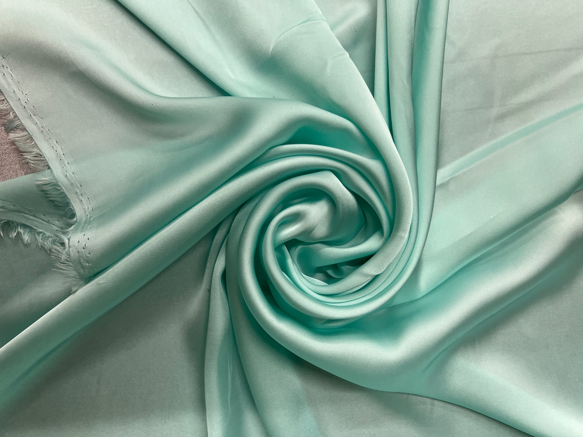 This honeydew green satin fabric has a beautifully smooth, glossy finish with a soft, silky drape. Cool to the touch...