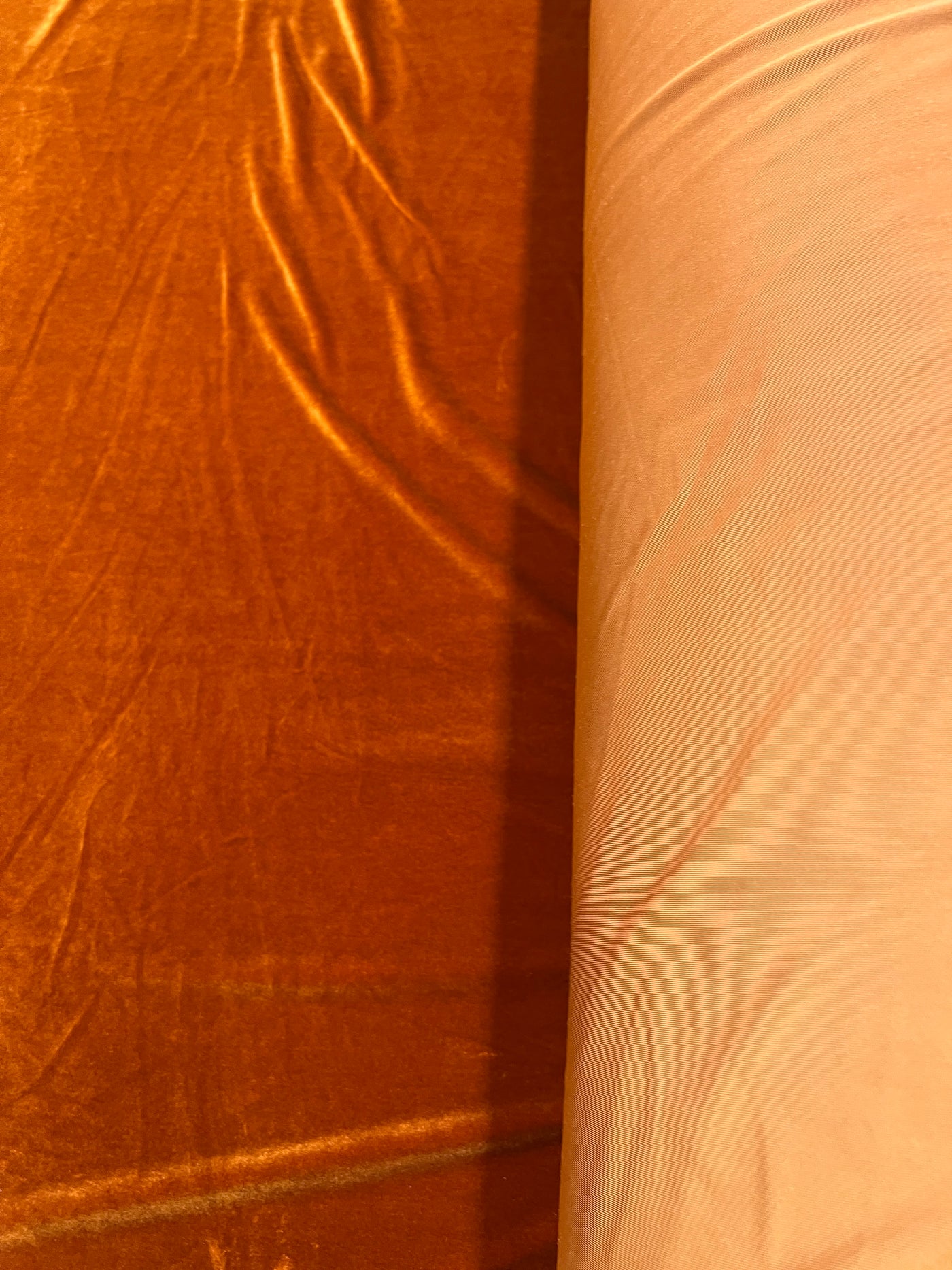 Stretch Velvet Fabric for Dresses, Loungewear & Costumes – Burnt Orange Velour, 160cm - Sample