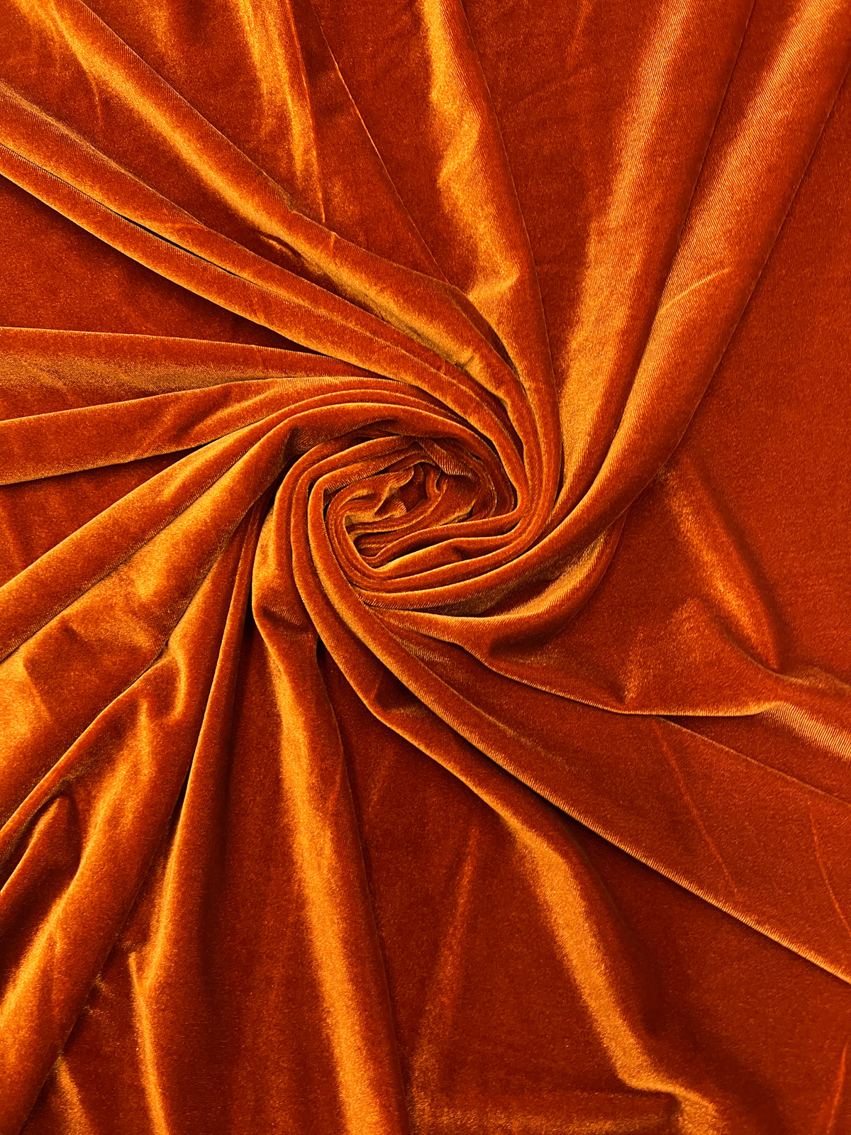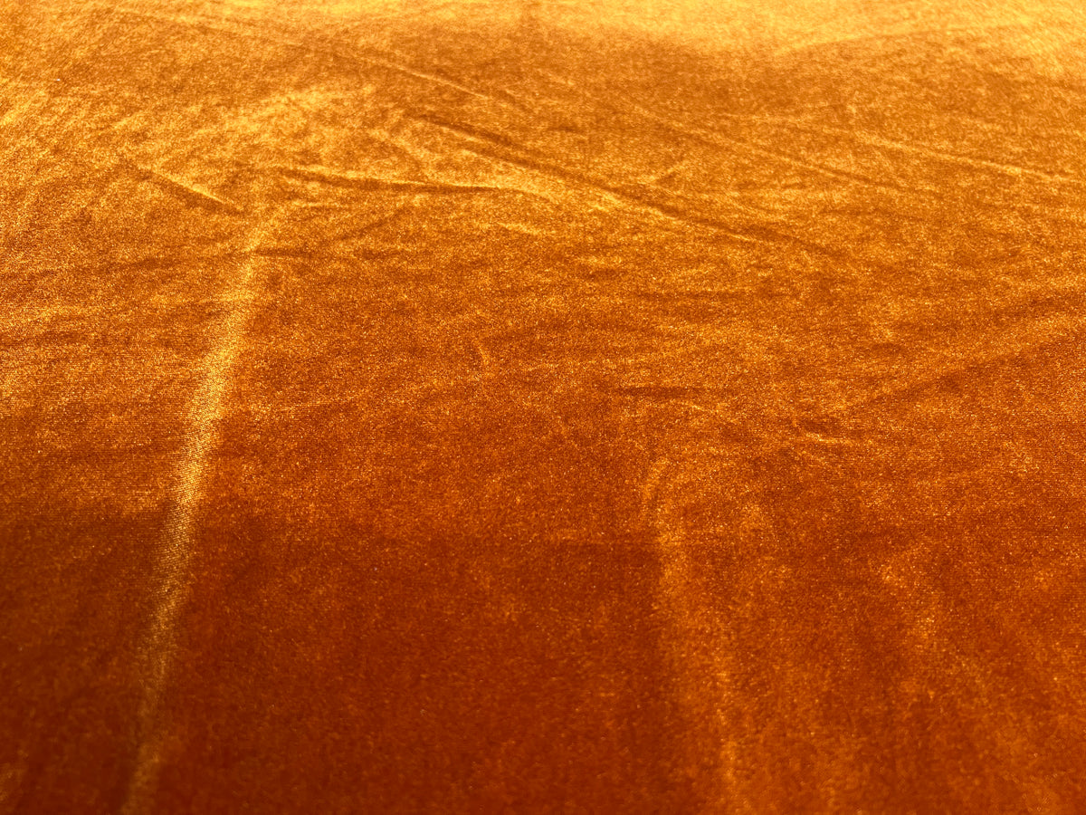 This burnt orange stretch velvet (velour) fabric features a rich sheen, soft pile and a beautifully plush texture. With gentle...