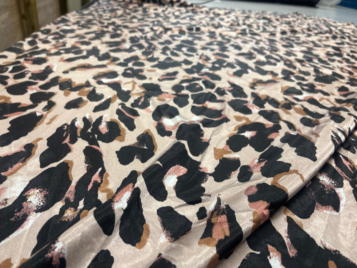 Abstract Leopard Print Satin Fabric – Neutral Tones 140cm
