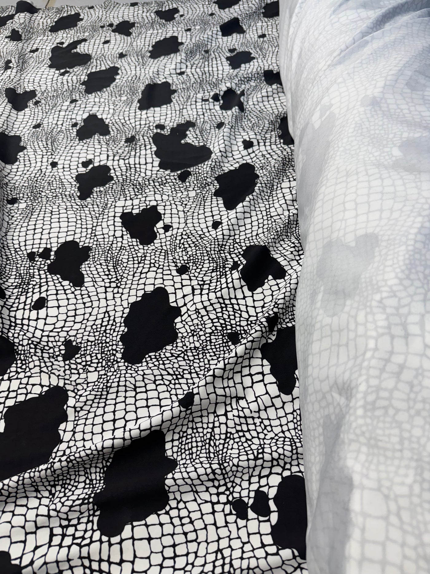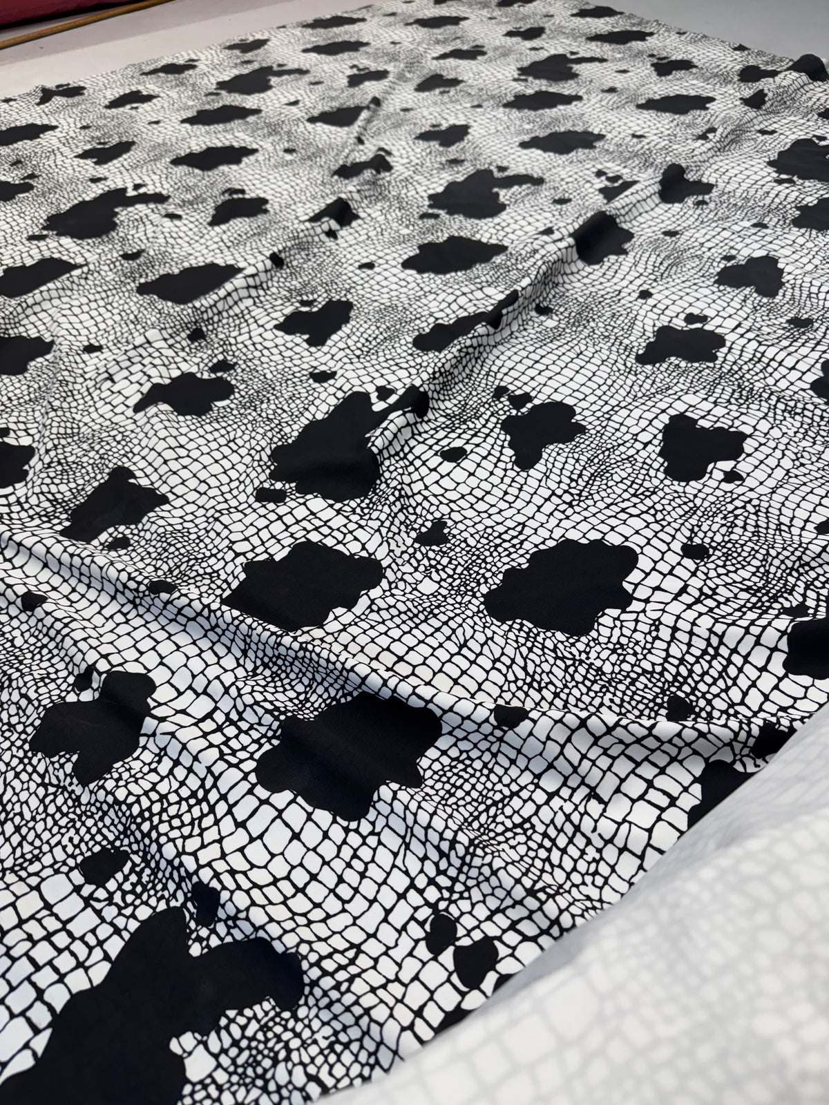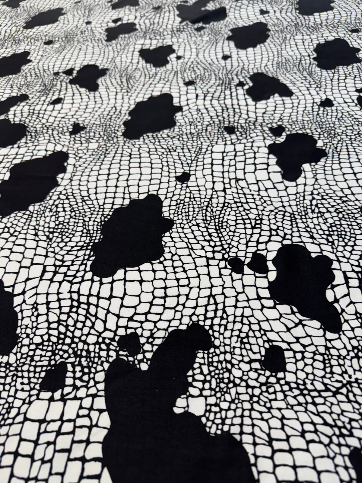 Black & White Snakeskin Cow Print Stretch Fabric Jersey by the Metre 155cm - Sample