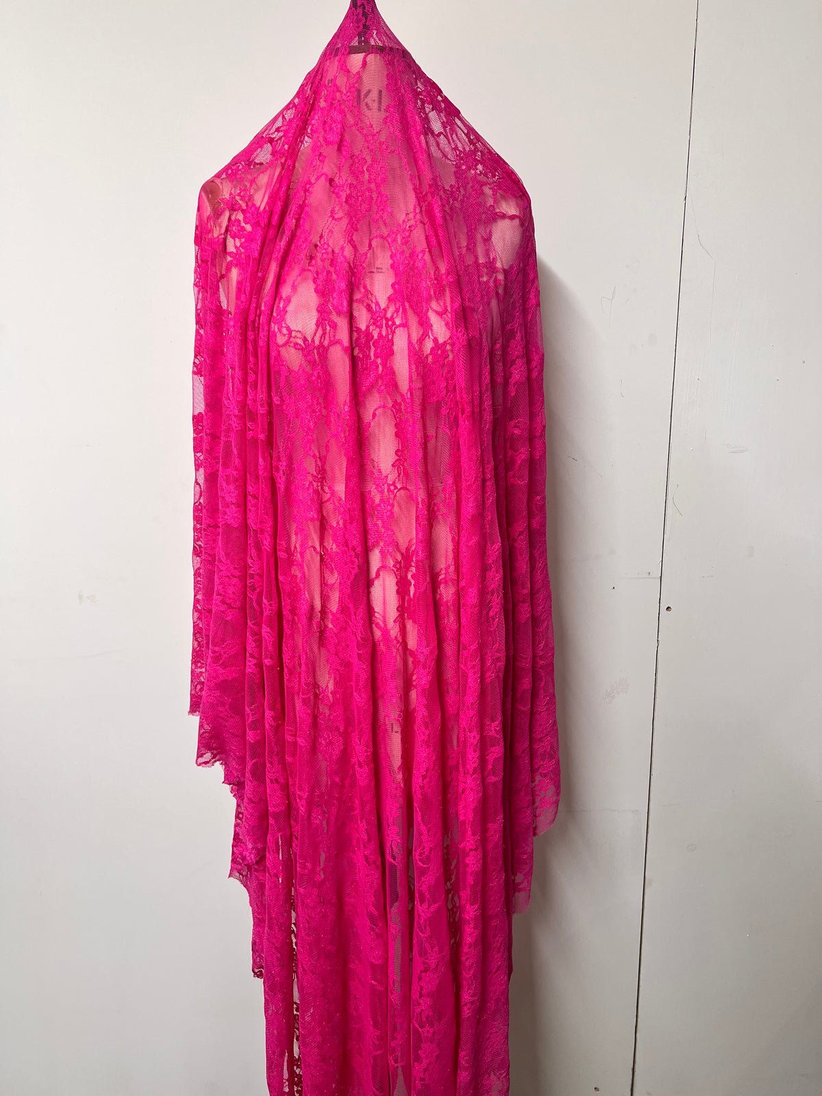 This Hot Pink features an intricate floral pattern with a delicate, openwork texture and an elegant drape. Lightweight and beautifully detailed,...