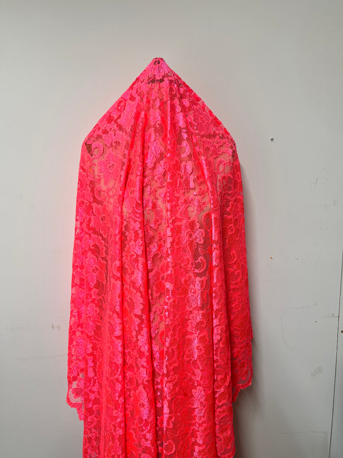 Corded Premium Coral Pink Lace Fabric ,141cm Wide