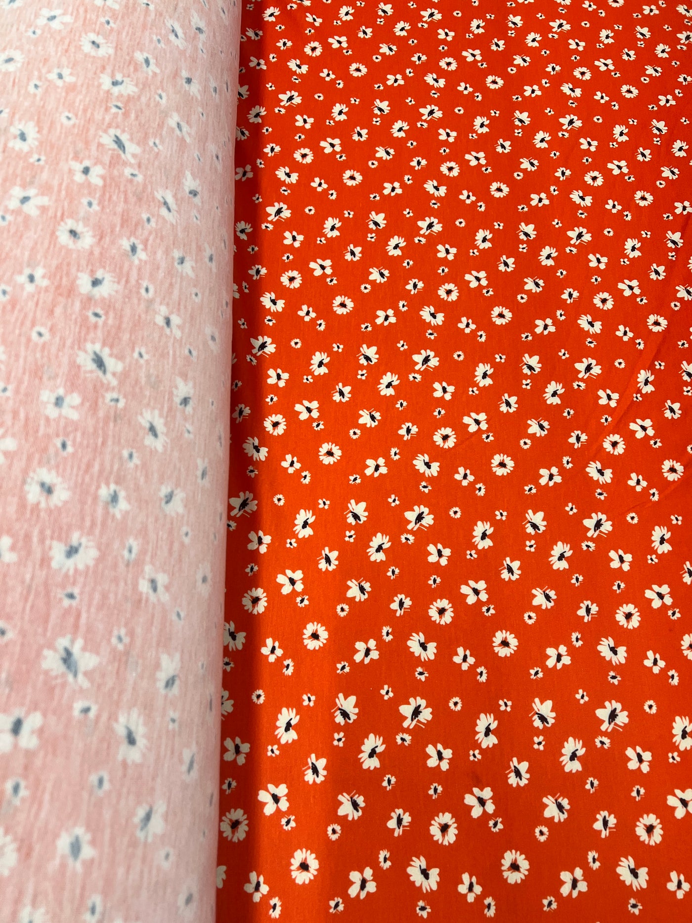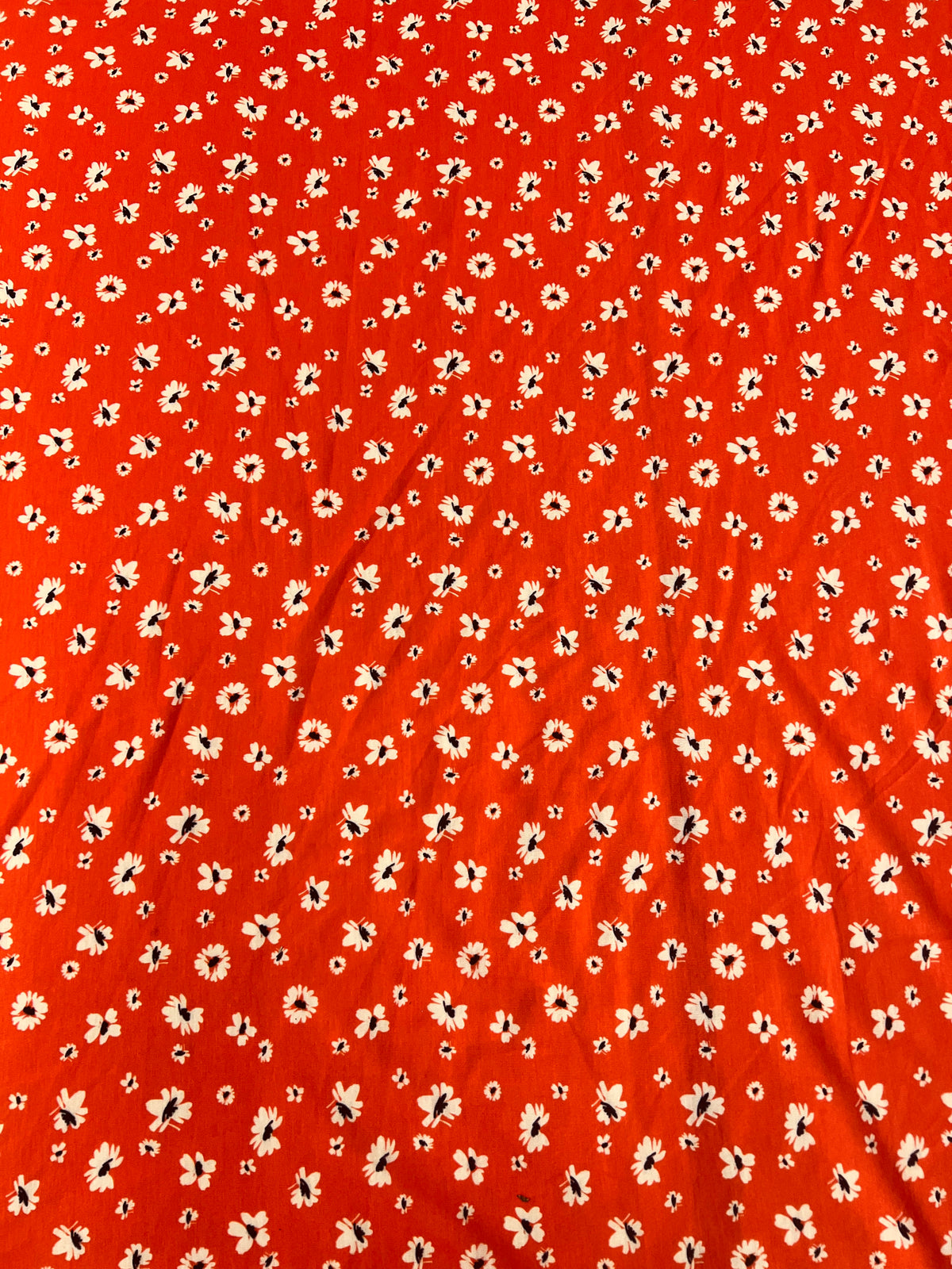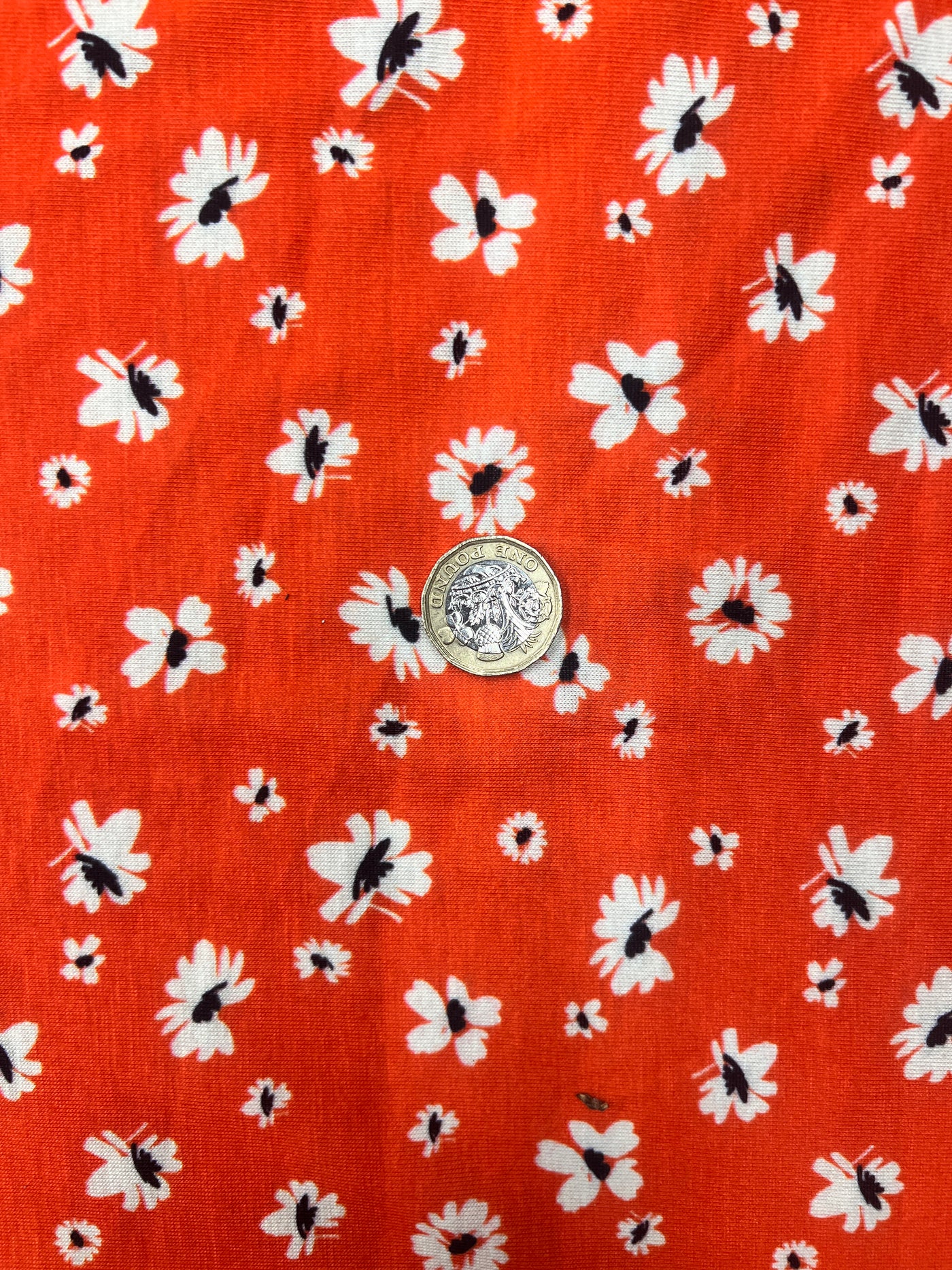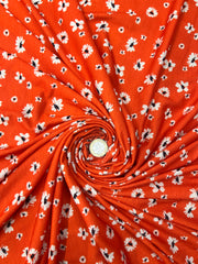 Orange Daisy Floral Print Spun Polyester Jersey Fabric 145cm - Sample